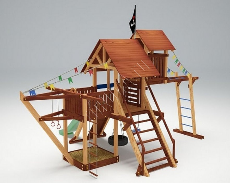 Площадка Галиот 6 обладает довольно широким функционалом (который по желанию можно легко расширить). А на качелях могут кататься даже родители! Детская площадка предназначена для дачи, коттеджа.