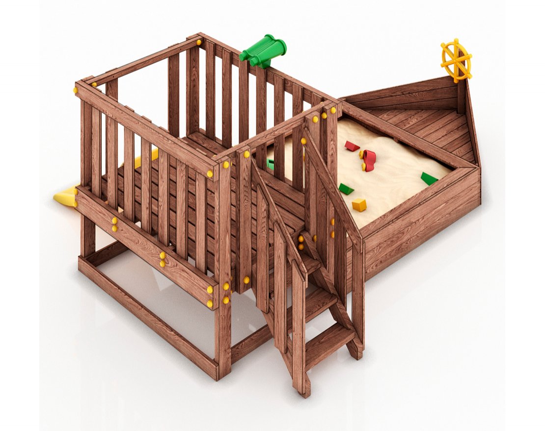 Детская песочница-кораблик и капитанский мостик с горкой с высоты 600 мм.