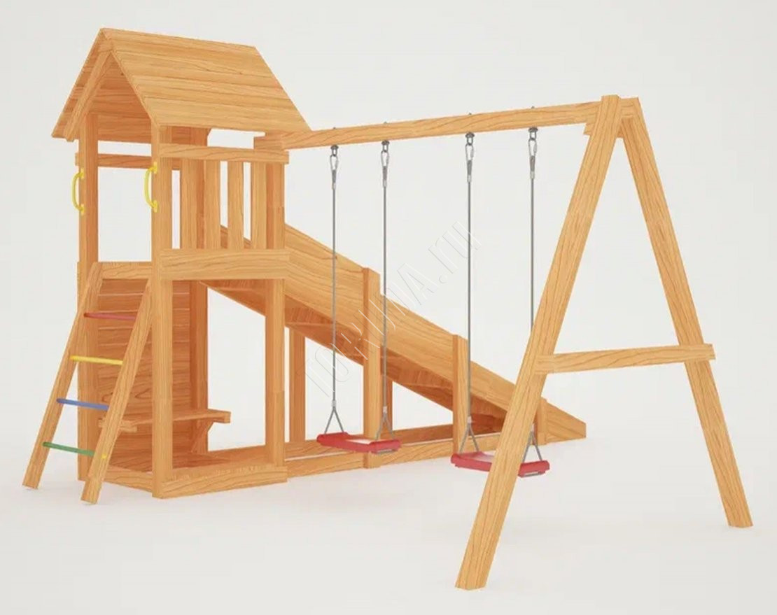 Комплексу не страшны палящее солнце и зимняя вьюга – он всепогодный. Необходимо только покрыть дерево краской с антисептиком.