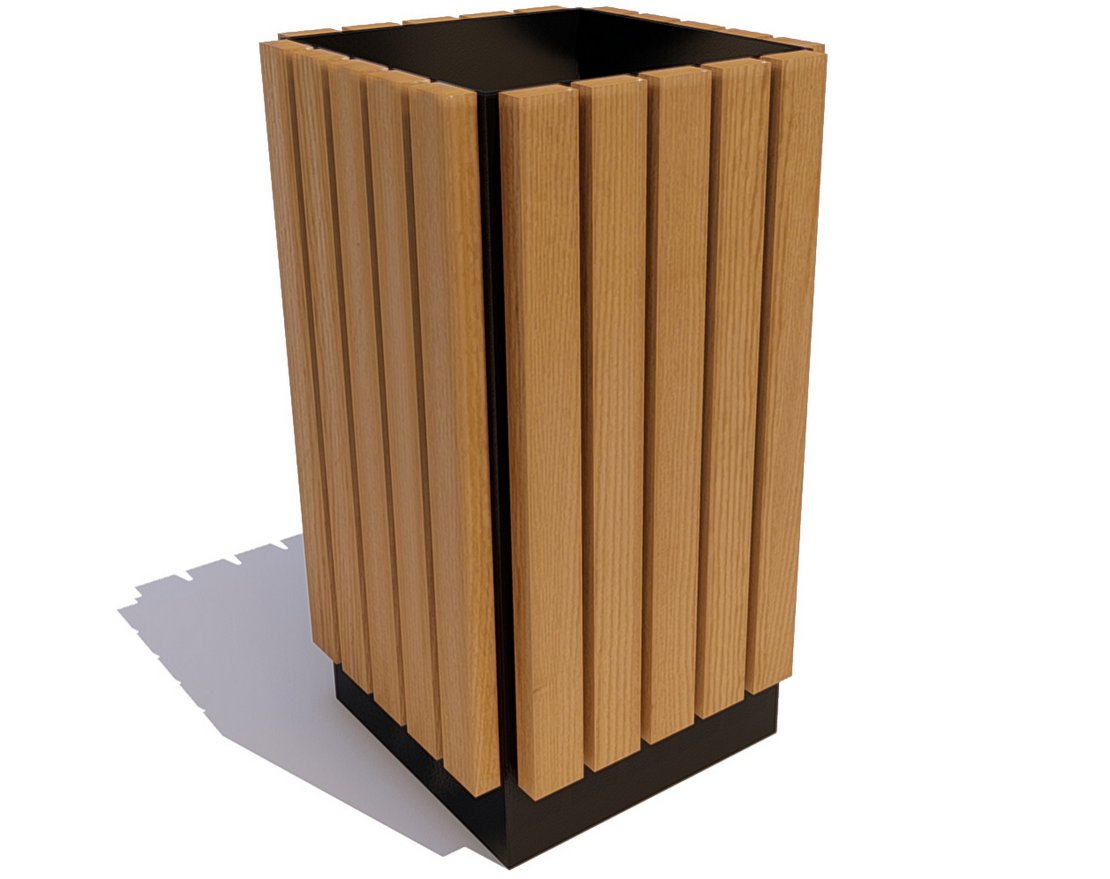 Каркас урны «Вертикаль» выполнен из листовой стали с применением лазерной резки. Покрыт порошковой полимерной краской. Стандартный цвет по умолчанию – чёрный муар. Есть возможность выбора цвета по шкале RAL.